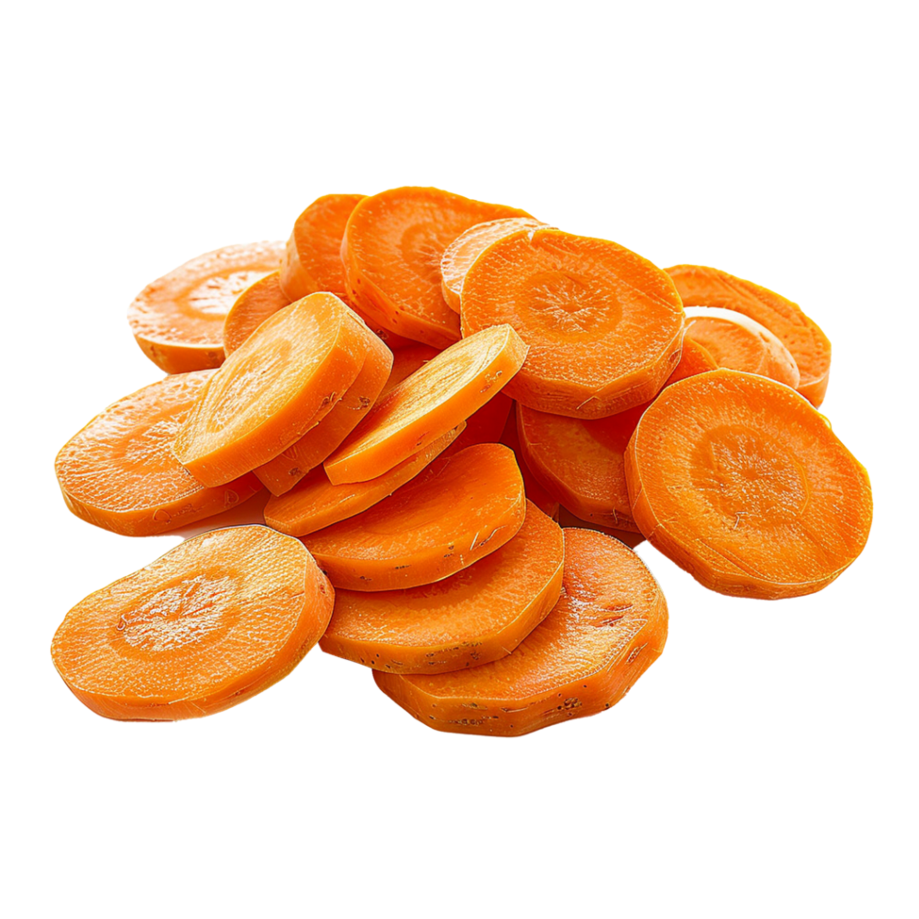 APPEARANCE & SIZE:  Frozen carrots typically appear bright orange with a matte or frosted surface due to the freezing process. Depending on the cut style, the surface may look smooth (in slices) or slightly rough (in diced or julienne.cuts).