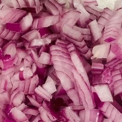 APPEARANCE & SIZE: Frozen red onions are available as slices, rings, cubes, or dices.