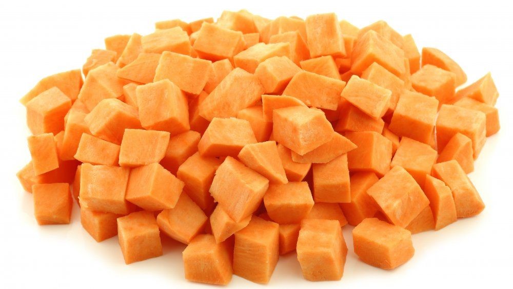 APPEARANCE & SIZE: Frozen sweet potatoes are available as cubes, fries, or slices, with firm texture.