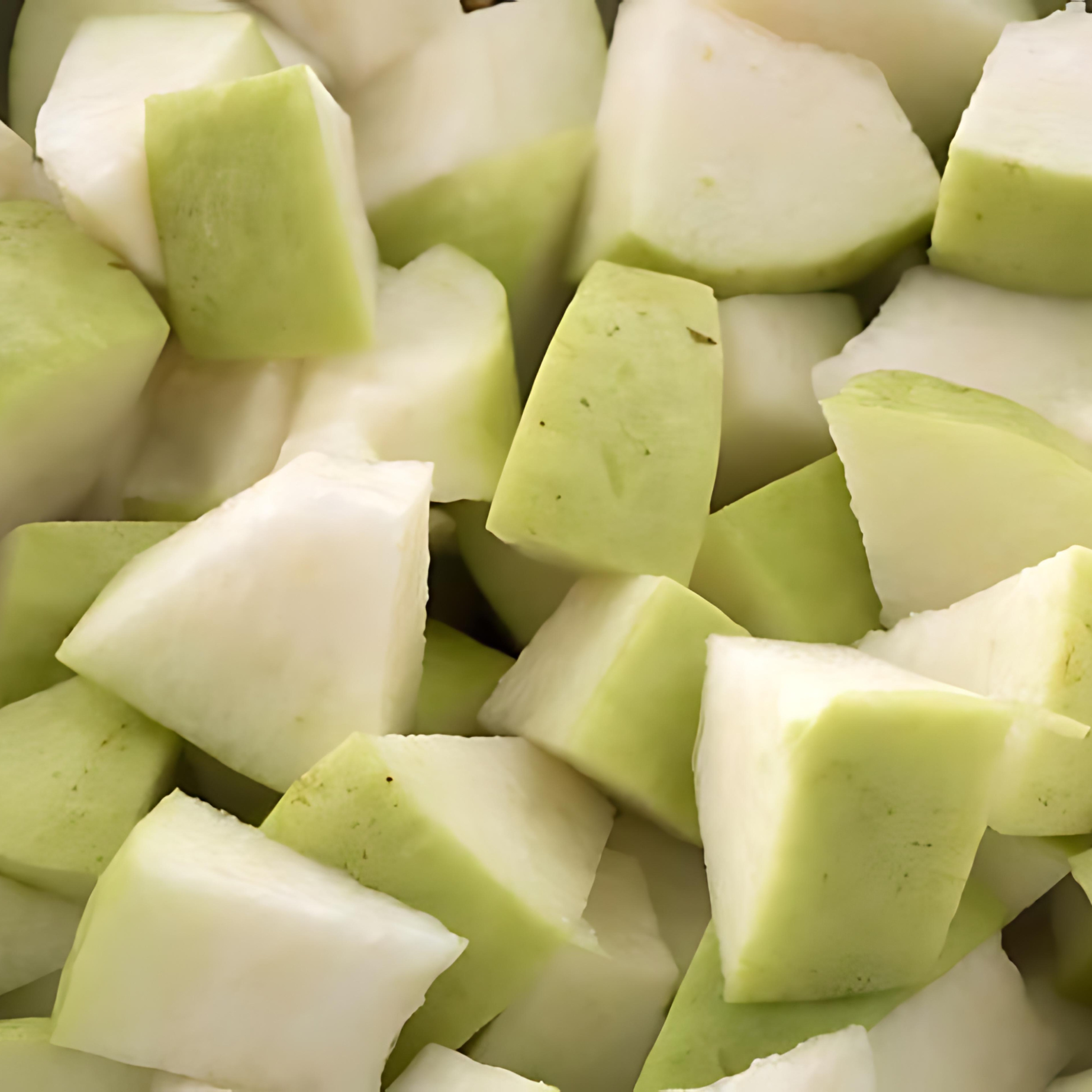 APPEARANCE & SIZE: Frozen guava is usually peeled, deseeded, and cut into halves, slices, or dices.