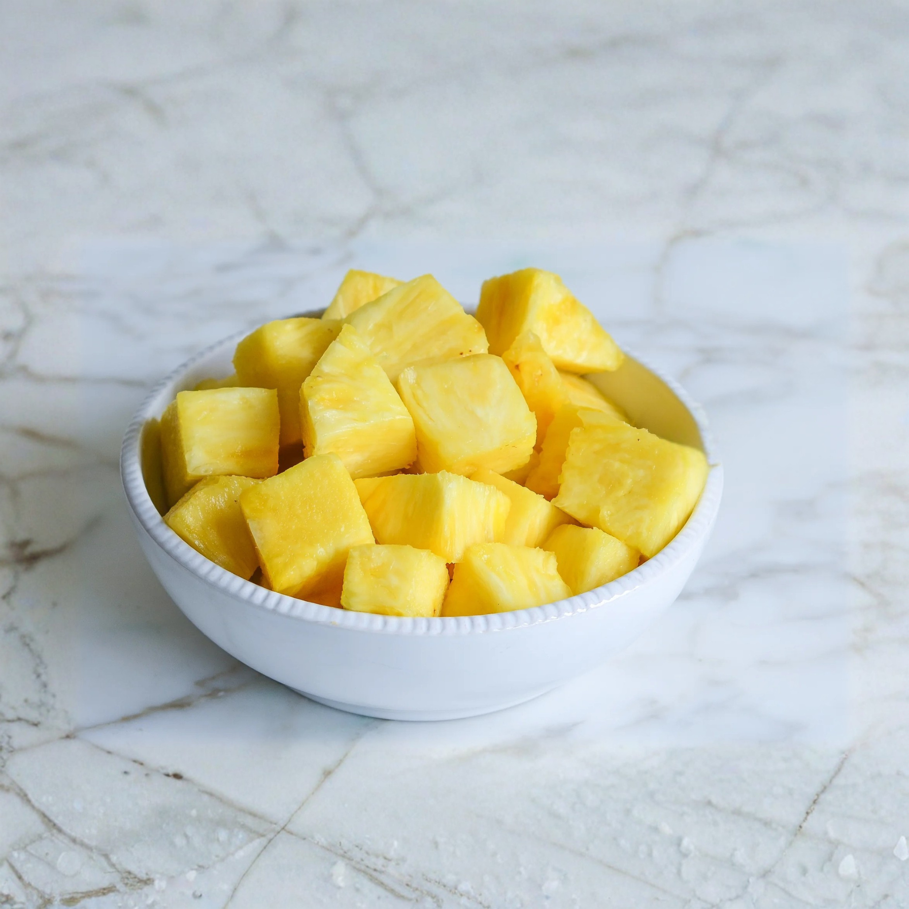 APPEARANCE & SIZE: Frozen pineapple is usually peeled, cored, and cut into cubes, slices, or chunks.